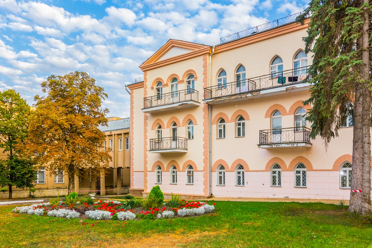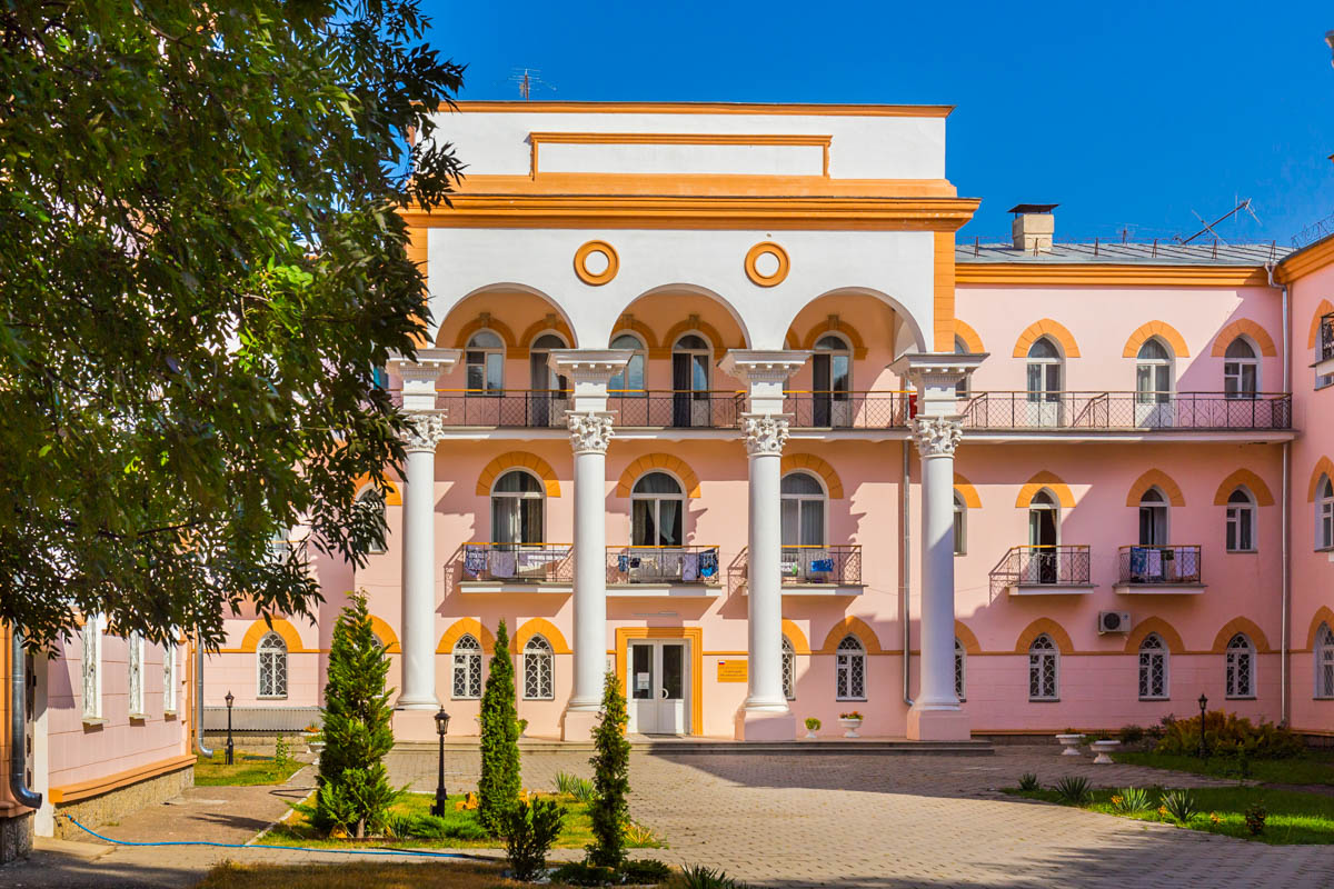В главном корпусе находится номерной фонд, где размещаются и проживают отдыхающие. Внешняя архитектура никого не оставит равнодушным, поскольку напоминает настоящий дворец с изящными арками, мощными колоннами и красивой лепниной. Во втором корпусе располагается медицинский центр, где есть лаборатории, кабинеты диагностики и процедурные кабинеты. А третий корпус выполняет назначение столовой, где в двух просторных залах проходят трапезы гостей.