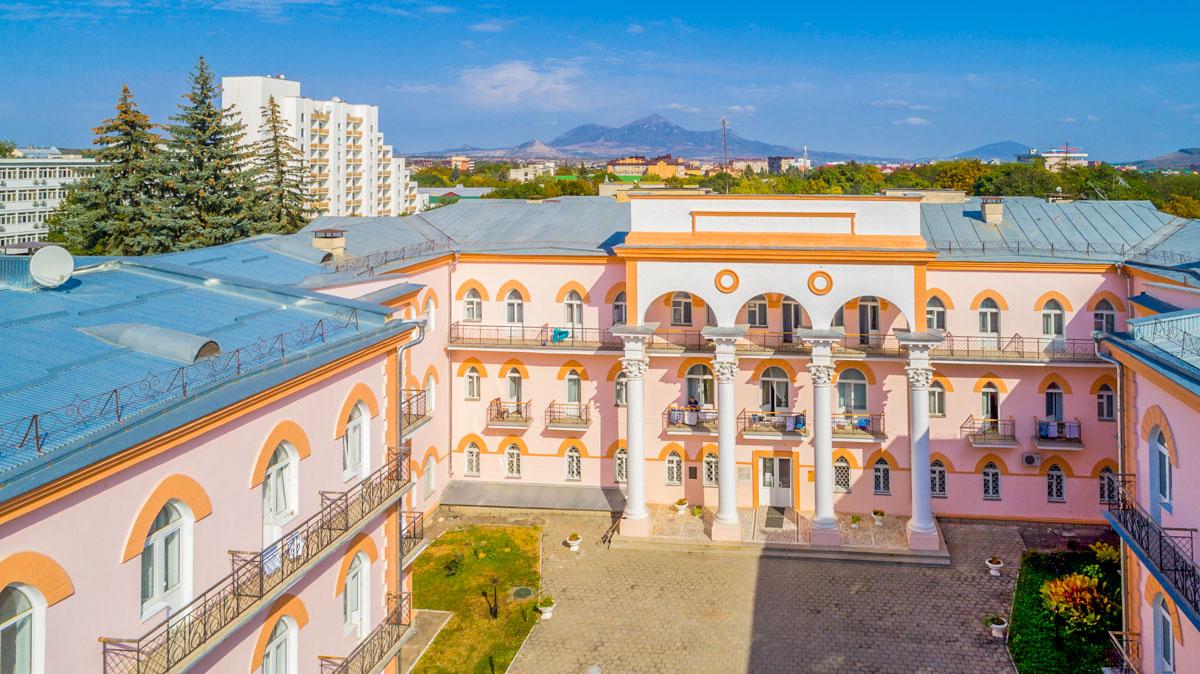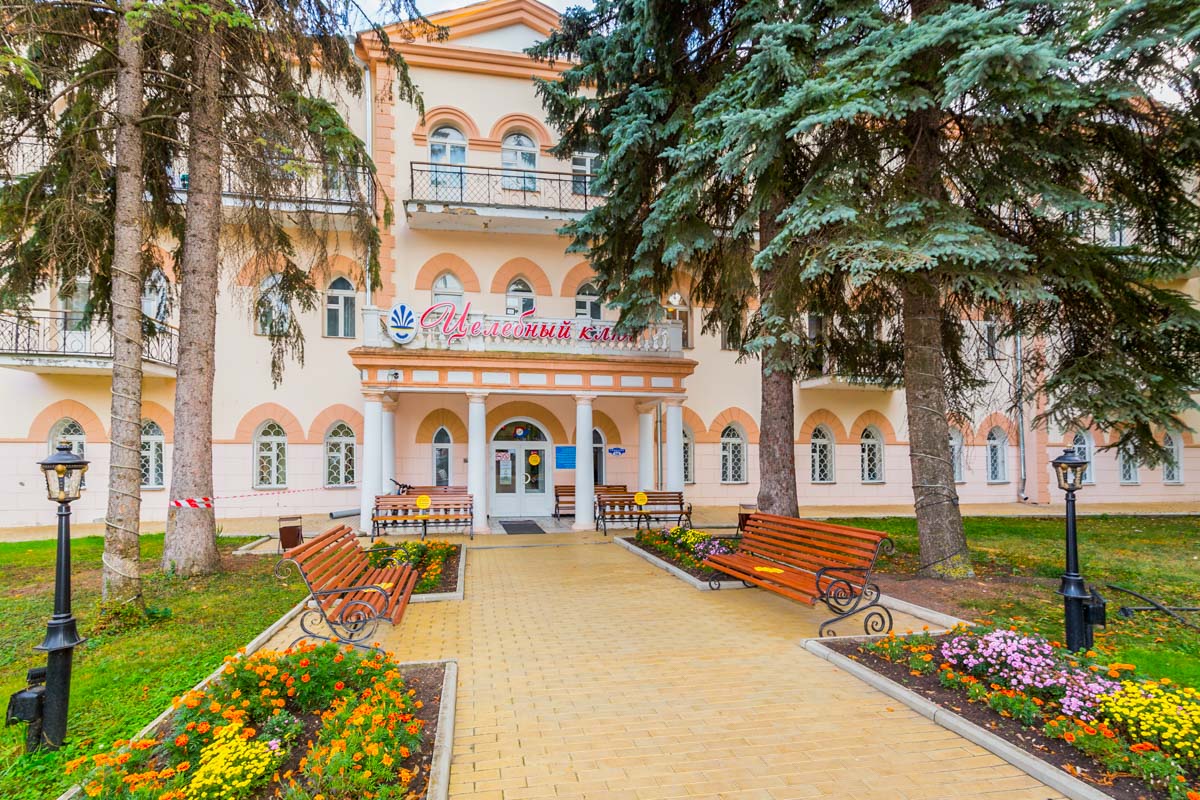 Санаторий “Целебный ключ” расположен в г. Ессентуки и представляет собой большое пространство, окруженное пышной растительностью — аккуратными кустарниками, высокими деревьями и яркими цветниками. Здание здравницы включает в себя три корпуса, каждый из которых состоит из трех этажей. При этом все здания оснащены комфортабельными лифтами, дополнены декоративными балконами и соединены теплыми переходами. Гостям можно перемещаться внутри здания, не выходя на улицу.